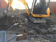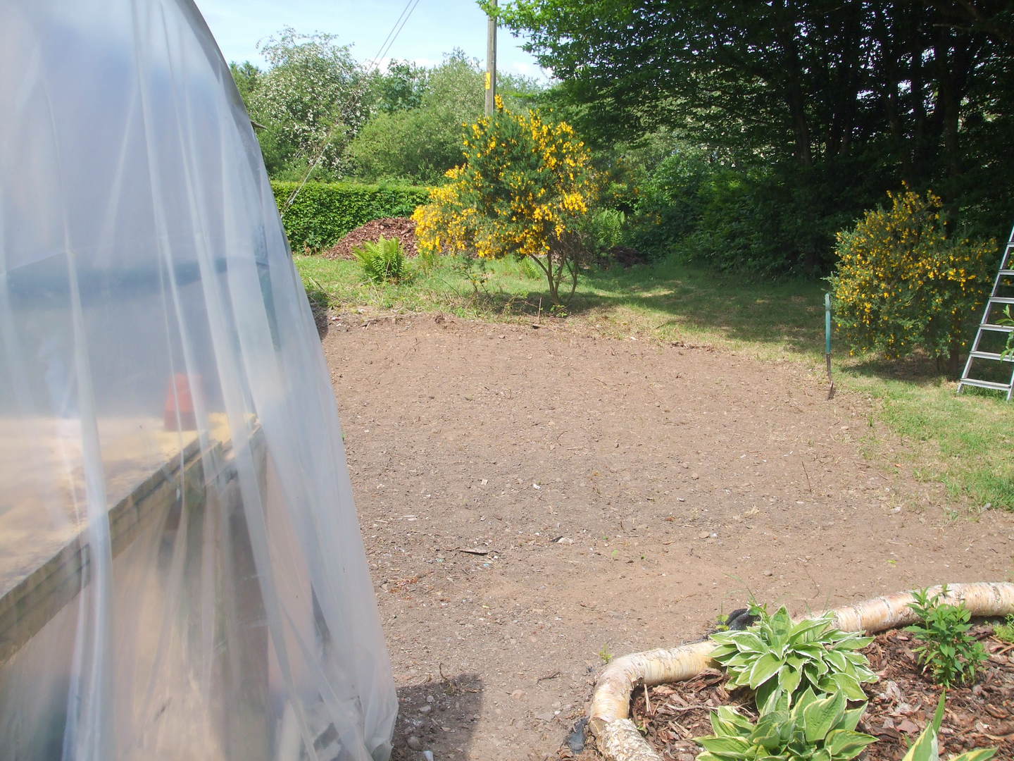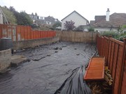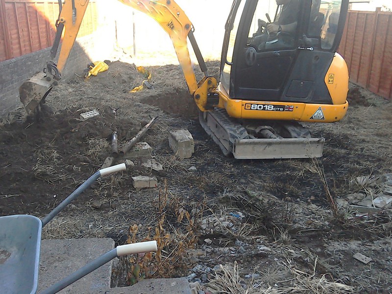 Below - garden clearance of overgrown ground using a mini-digger. Terram laid ready for customer to cover with bark chips or gavel.