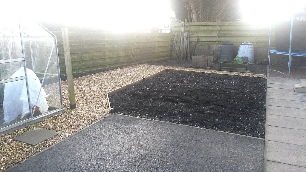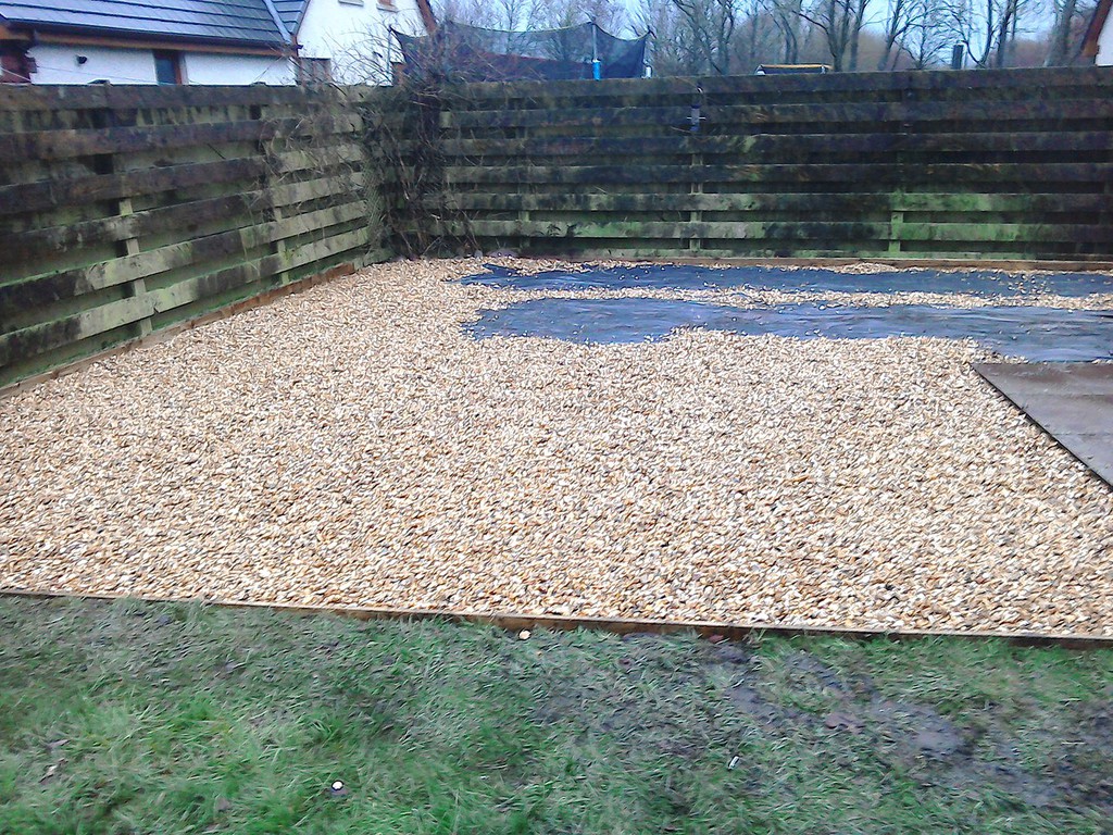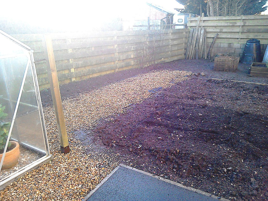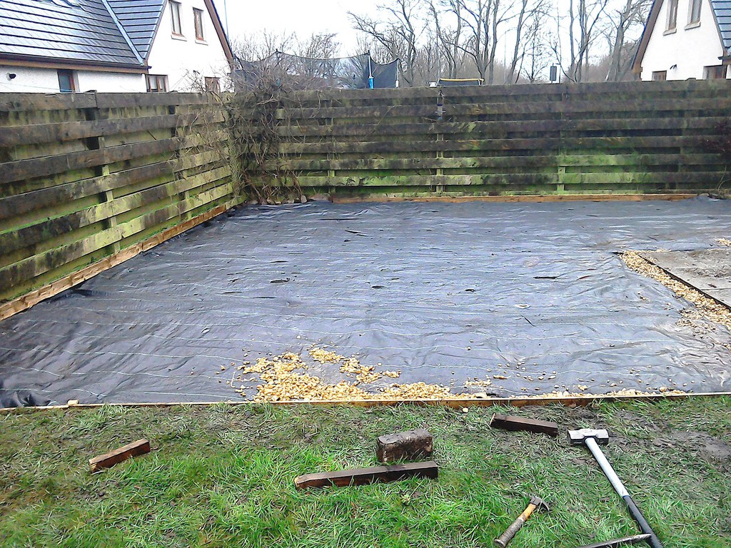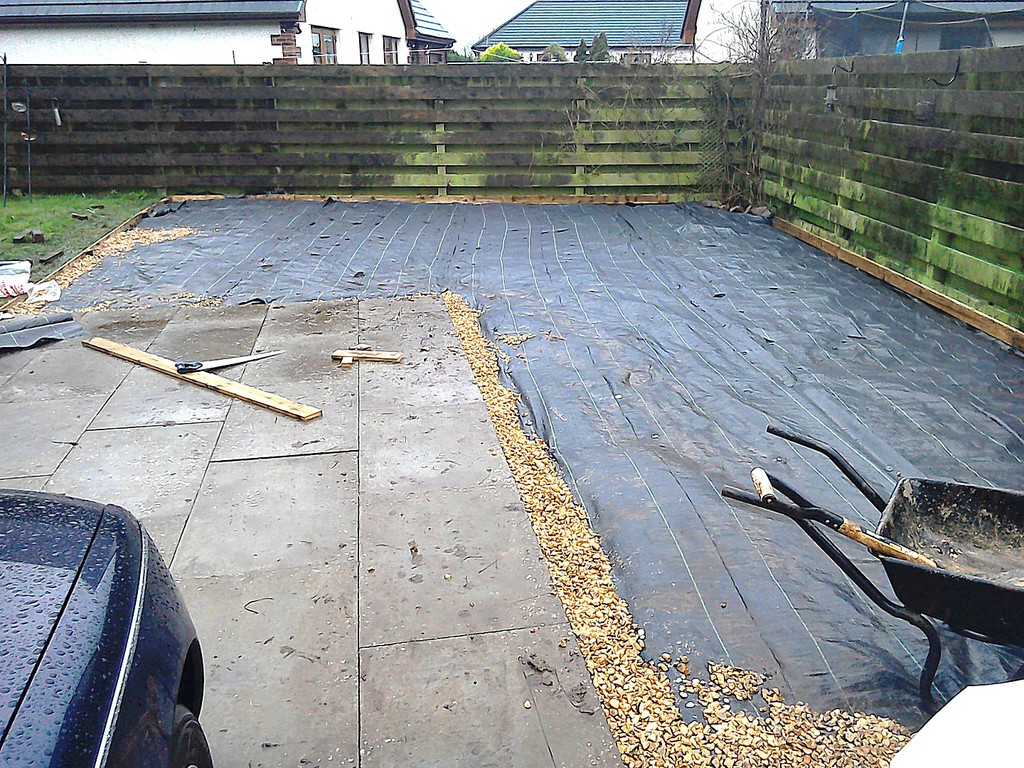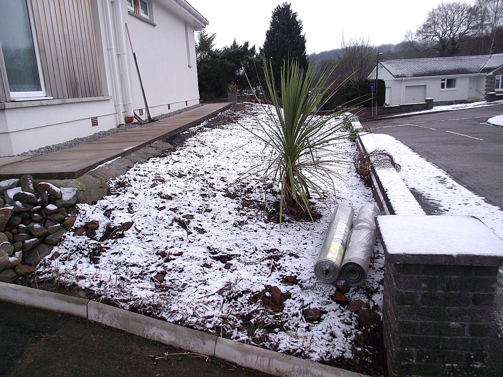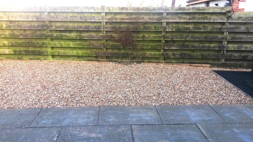 (shrub clearance, weed supress, edgings & gravel)
