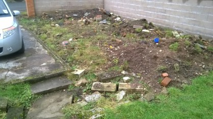 After removal of a cherry tree & old overgrown shrubs, this ground was dug over & lawn seed planted. The picture on the right was taken 1 month after the seed had germinated.