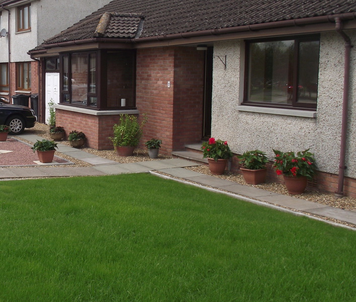 The lawn below was created on top of an area of overgrown wasteland which had been used to burn rubbish. The ground itself was covered in weeds, comfort plants & wild briars. After spraying & clearing the site in the spring, over 20 tonnes of topsoil was levelled over the area & grass seed sown. The picture on the right was taken that summer.