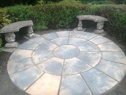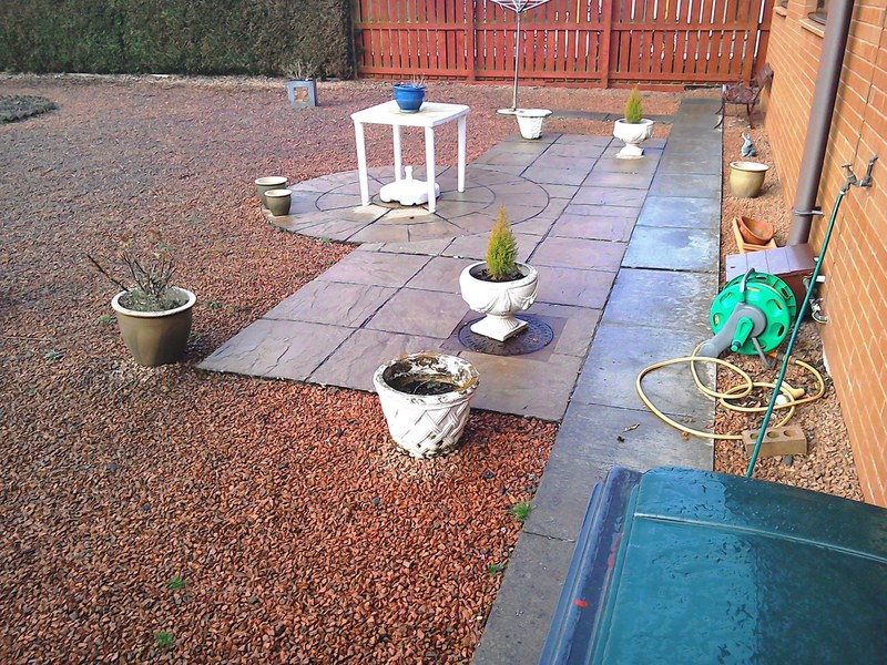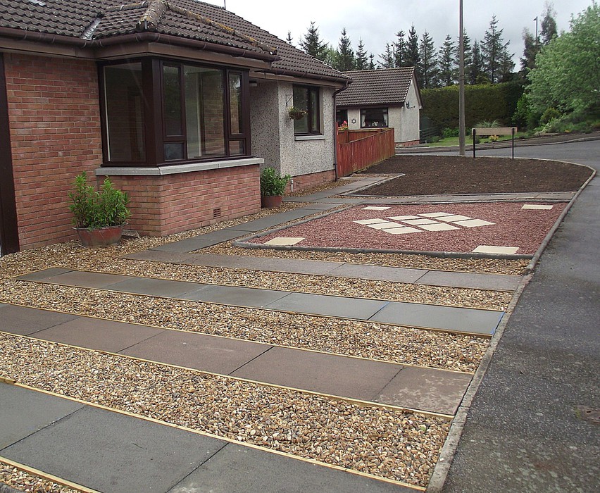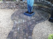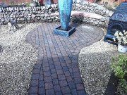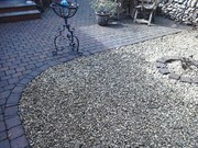 The pictures below show some completed paving, kerbing, gravel work. The soil area in the image was then seeded & is now a lush lawn.